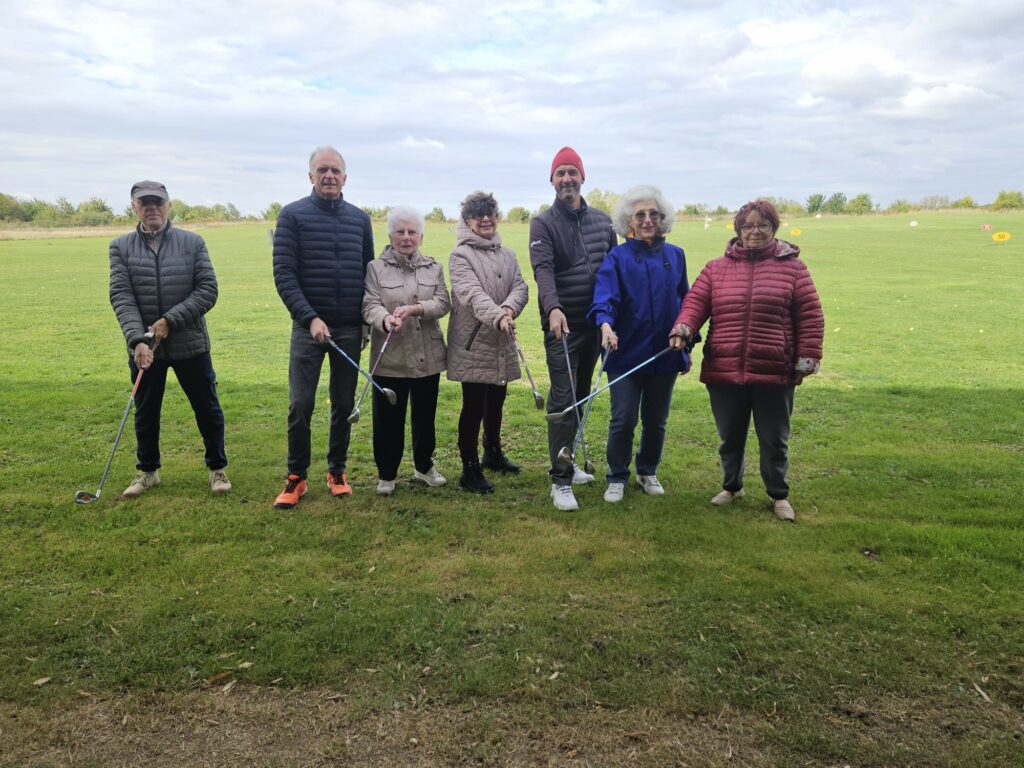 Avec un temps maussade mais sans pluie, 13 seniors ont découvert les bases du swing et du putting. Gageons que nous retrouverons certains d’entre eux sur les fairways dans les prochains mois !